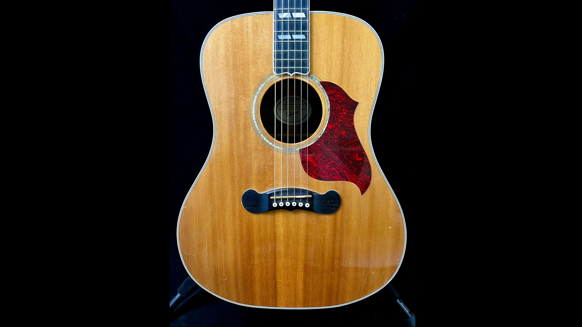 The pick guard was changed but is included in the case. There was a split repair on the side which was professionally done and some evidence of splitting on the top which is still tight, (see photos). Plays well and the neck is straight.
